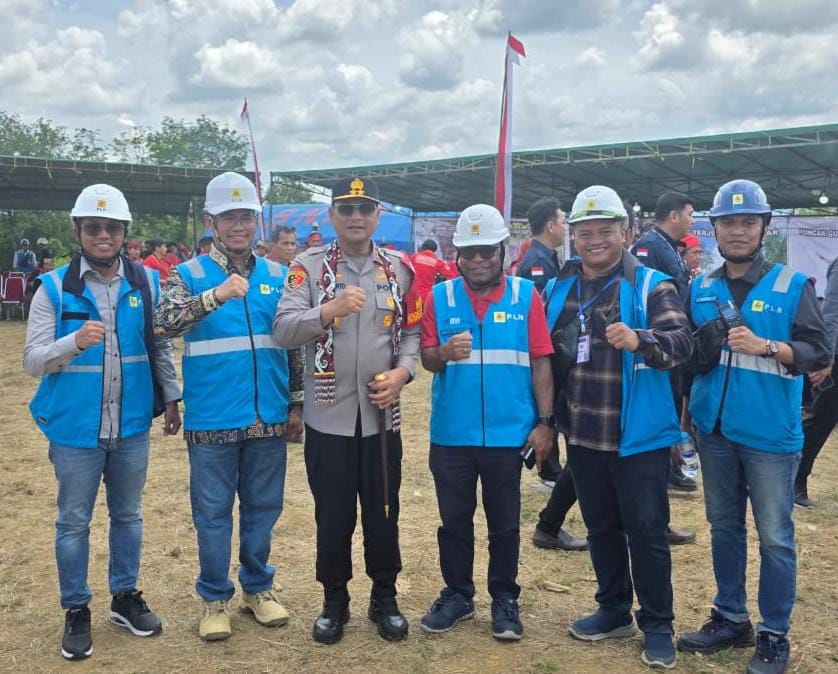 Senior Manager Distribusi PLN UID Kalbar, Salmon Kareth (ketiga dari kiri), Manager PLN UP3 Mempawah (kedua dari kanan), bersama Kapolda Kalbar, Irjen Pol. Pipit Rismanto, S.I.K., M.H (ketiga dari kiri) siap mengamankan kunjungan dari Wakil Presiden RI, Gibran Rakabuming Raka, di Kecamatan Toho, Kabupaten Mempawah.(FOTO/DOK/PLN)